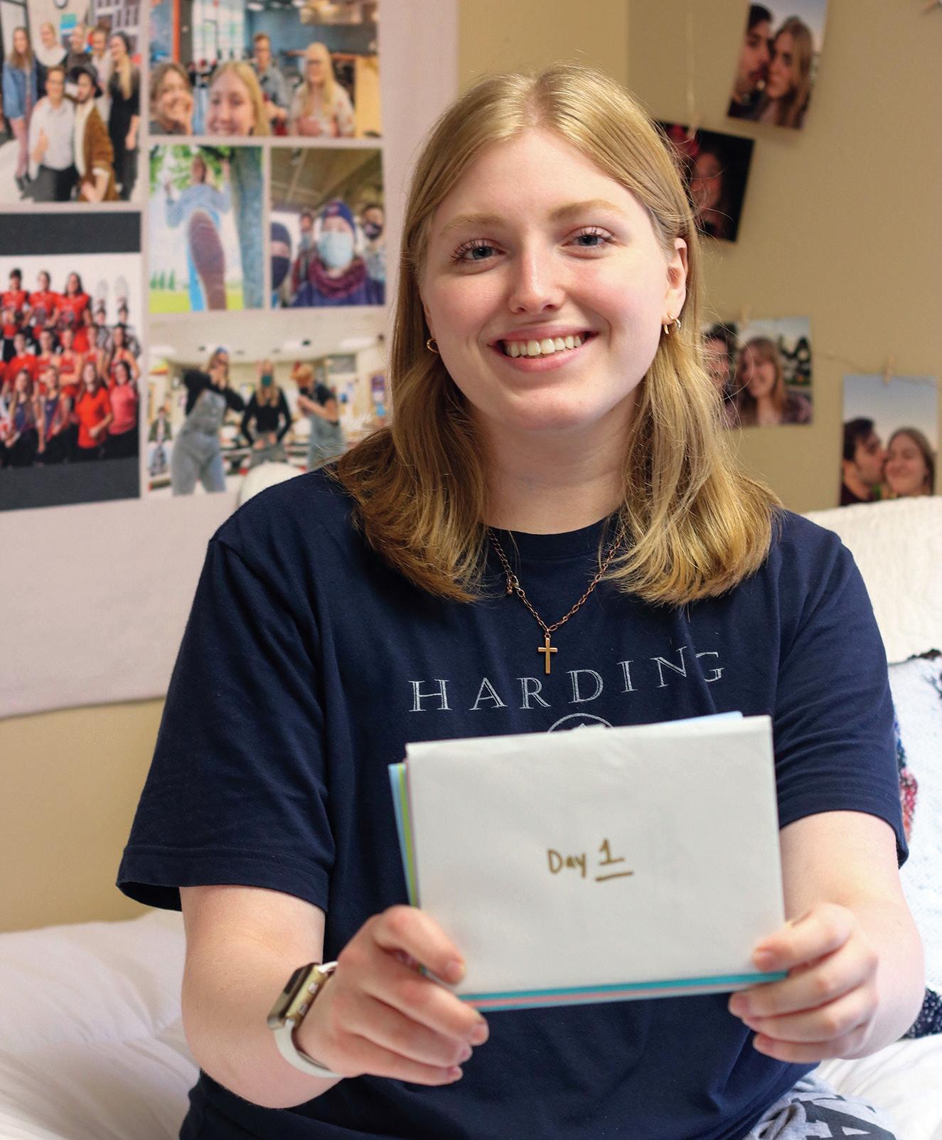 Maggie Tackitt displays letters from her mom in her dorm on Sept 5. Tackitt went viral by making TikTok videos of the care packages she received from her mom.