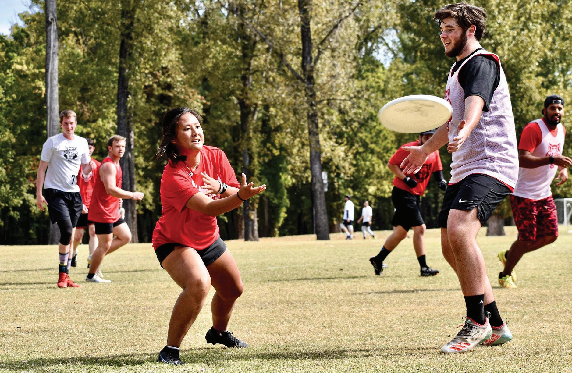 Senior Sophie Balentine and the Harding University Ultimate Frisbee team compete against Arkansas State University.