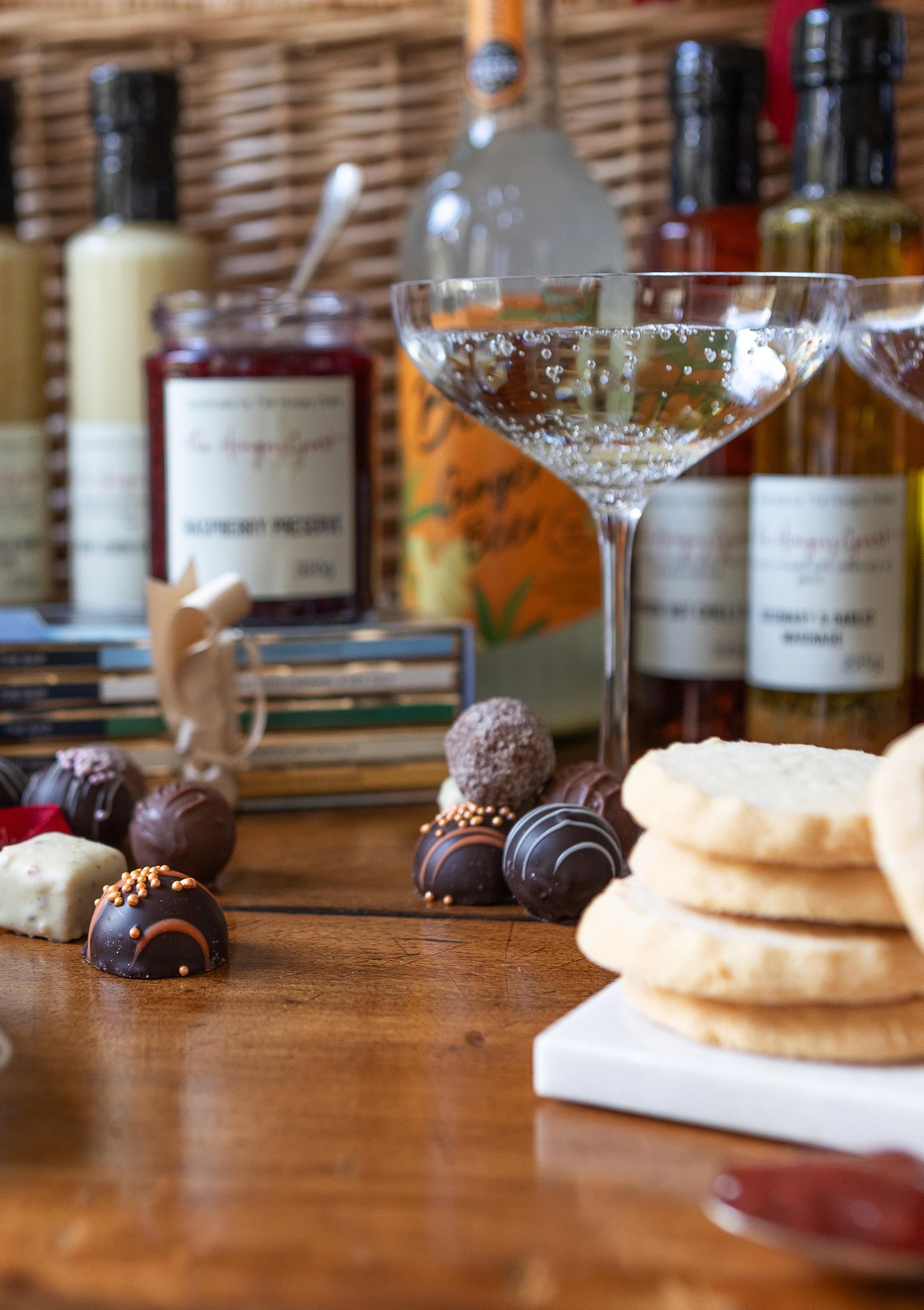 £80.00 Presented in a Fluted Box-Half Bottle Nyetimber Classic Cuvee 37.5cl The Hungry Guest Chocolate Truffles Box 23 Chocolate White chocolate cinnamon honey pecans Salcombe Dairy Chocolate Buttons