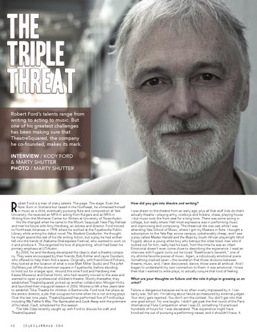 THE TRIPLE THREAT Robert Ford’s talents range from writing to acting to music. But one of his greatest challenges has been making sure that TheatreSquared, the company he co-founded, makes its mark. INTERVIEW / KODY FORD & MARTY SHUTTER PHOTO / MARTY SHUTTER