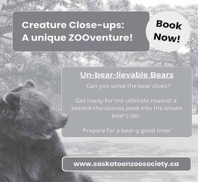 The Saskatoon Zoo Society’s four Creature Close-up programs (Caribou-t the Wild, the Meer-Quill Experience, Kunekune: For Pig’s Sake, and Un-bear-lievable Bears) offer participants