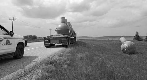 Report of two Alberta vehicles racing in and out of traffic westbound on Highway 14. Not everyday you can use this excuse for missing your Par opportunity, as a semi lost part of its load, bouncing a sewer