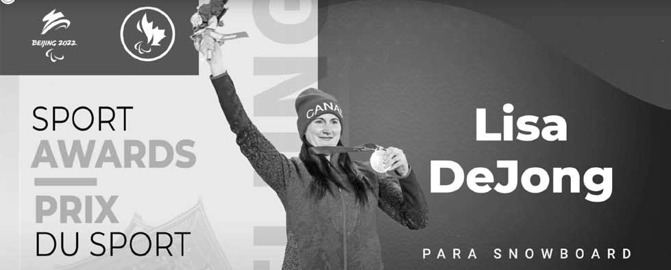The Canadian Paralympic Sport Awards recognized DeJong for her outstanding athletic and team perfor-