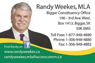Phone: 306-948-3344 Fax: 306-948-2133 E-mail: tip@sasktel.net COPYRIGHT The contents of The Independent are protected by copyright. Reproduction of any material herein may be made only with the written permission of the publisher. LETTERS TO THE EDITOR The Biggar Independent invites the public to participate in its letters to the Editor section. All letters must be signed. We acknowledge the financial support of the Government of Canada. Publications Mail Registrations No. 0008535 Published by THE INDEPENDENT PRINTERS LTD. and issued every Thursday at the office of publication, 122 Main Street, Biggar Saskatchewan, S0K 0M0 Publishers - Dale and Trudy Buxton Editor - Kevin Brautigam Advertising Consultant - Dale Buxton CompositionP. O. Box 40 Biggar, SK S0K 0M0 www.biggarindependent.ca INDEPENDENT the Newspaper Pricing Online - $35+gst Pickup - $40+gst Delivery within 40 miles $45+gst Delivery Outside 40 miles - $50+gst