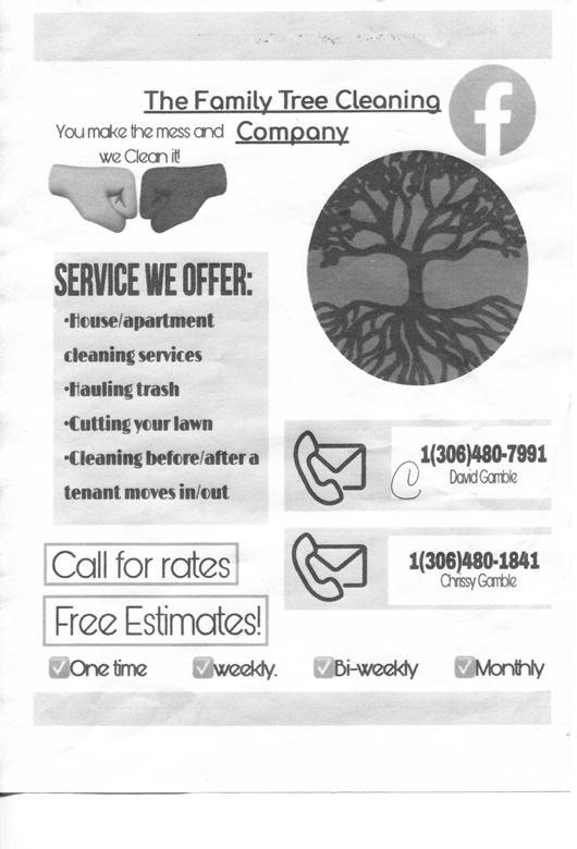 Park Place has apartments for seniors available in Biggar Call 948-3901 0r 948-7824 For rent NEW POTATOES 5lbs.BAG $10 “CORN COMING SOON” PHONE: 951-8292 948-6475 Show o the best side of your business! Don’t be faceless, give them something to recognize! ADVERTISE 306-948-3344 Biggar Independent WATKINS