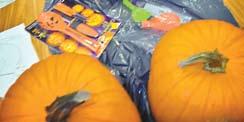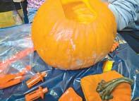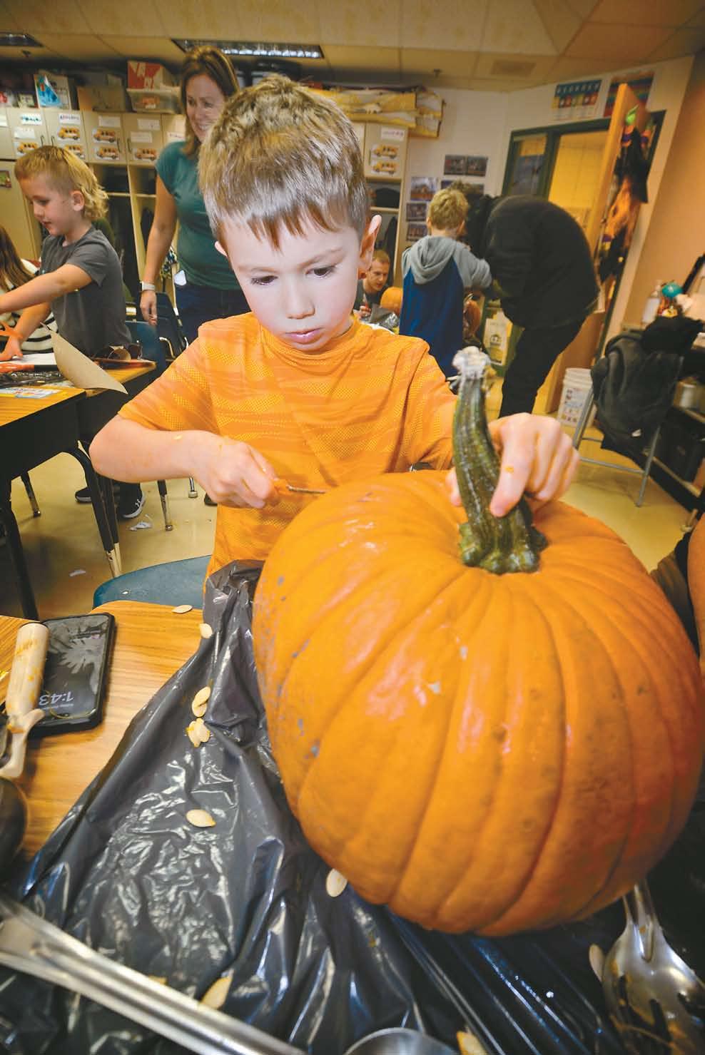Pumpkin Makeover ... Braxen Ellis gets ready to carve his pumpkin last week at Biggar Central School. Kids were designing their best and scariest pumpkin, all in preparation for the big day this Thursday. See Page 2 for more! (Independent Photo by Kevin Brautigam)