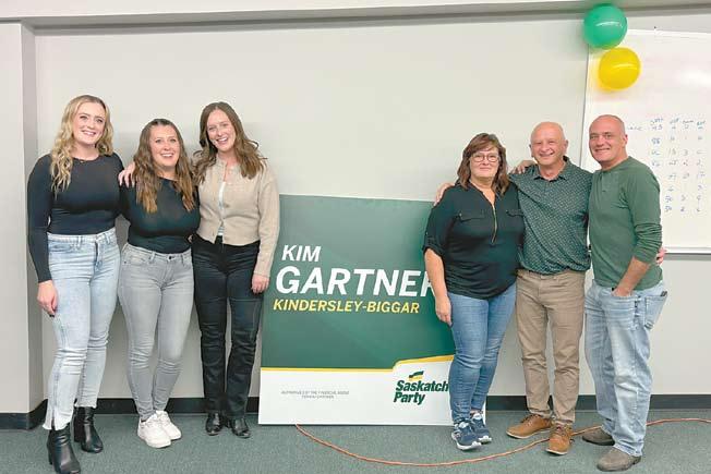 Kim Gartner (second from right) has reason to smile. He, joined here by family and friends, will represent the Kindersley-Biggar constituency after the provincial election this past Monday. (Submitted Photo)