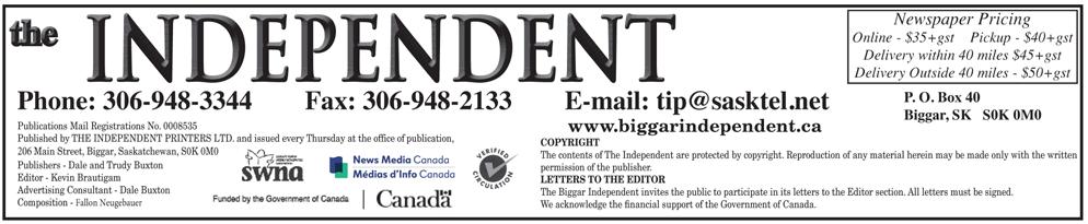 Sunday Mass....... 11:00a.m. our lady of fatima CatholiC ChurCh, Landis Sunday Mass.......9:00a.m. Biggar associated gospel church 312 - 8th Ave.W. and corner of Quebec St., Biggar