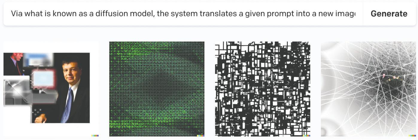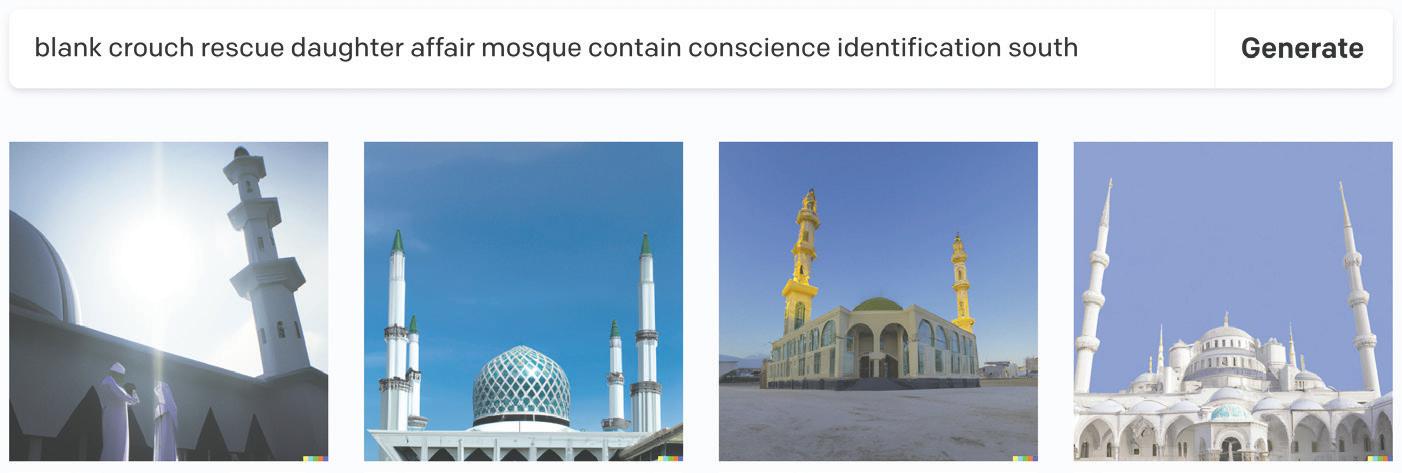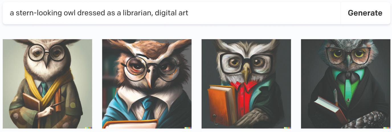 Prompt generated by DALL-E’s “Surprise me” function. Most of DALL-E’s suggested prompts involve anthropomorphic animals participating in whimsical activities.