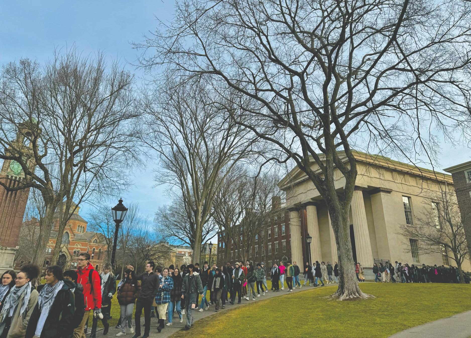 On the seventh day of the hunger strike, there was a 15-minute die-out on the Main Green and regular rallies, including a Labor for Palestine rally, where GLO announced its campaign for divestment and Brown Center for Students of Color workers announced their plan to unionize in the face of the Center’s prior repression of pro-Palestine voices. More than 200 students joined a solidarity fast with the hunger strikers on Thursday morning until the Corporation meetings ended on Friday afternoon. On Friday, they followed Corporation members as they switched meeting venues multiple times to evade the hunger strikers and protestors demanding that the Brown Corporation receive the updated ACCRIP report and discuss divestment in their meeting. Despite the Corporation not meeting these demands, members and supporters of the strike are committed to keep fighting for divestment.