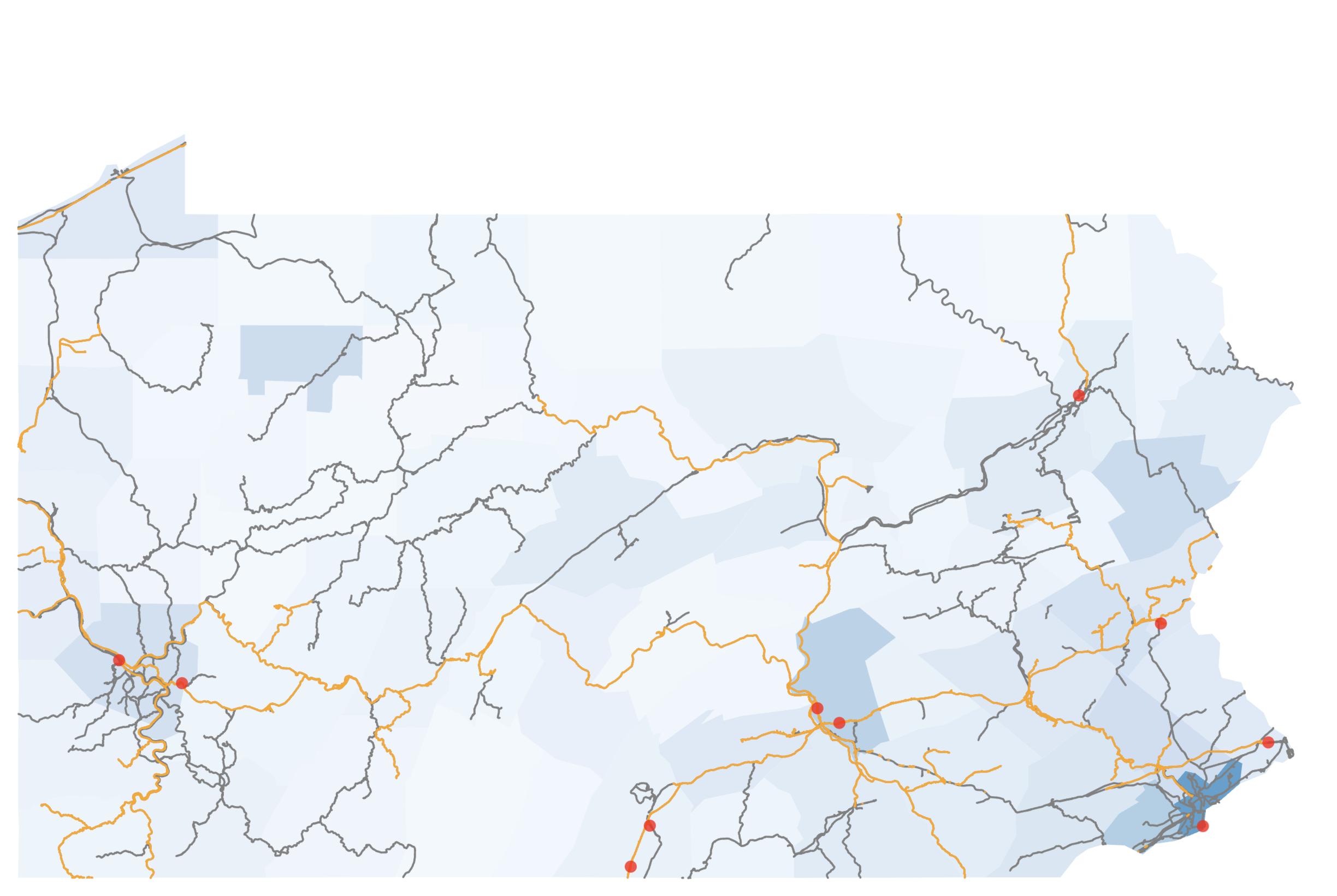 While Norfolk Southern’s development has not been finalized, the project appears ready to begin development, as of a final town hall meeting in January. But even if RP3 had continued to resist Norfolk Southern’s plans, most towns near rail lines or yards have no real way to avoid being thrown into what Olcerst calls the “blast zone” of petrochemical freight. As of 2022, a rail map of the Pittsburgh region reveals a snarl of at least six different rail lines that crisscross Allegheny County. Zooming out to Pennsylvania as a whole paints a similar picture, with rail lines crossing through almost every single county on the map.