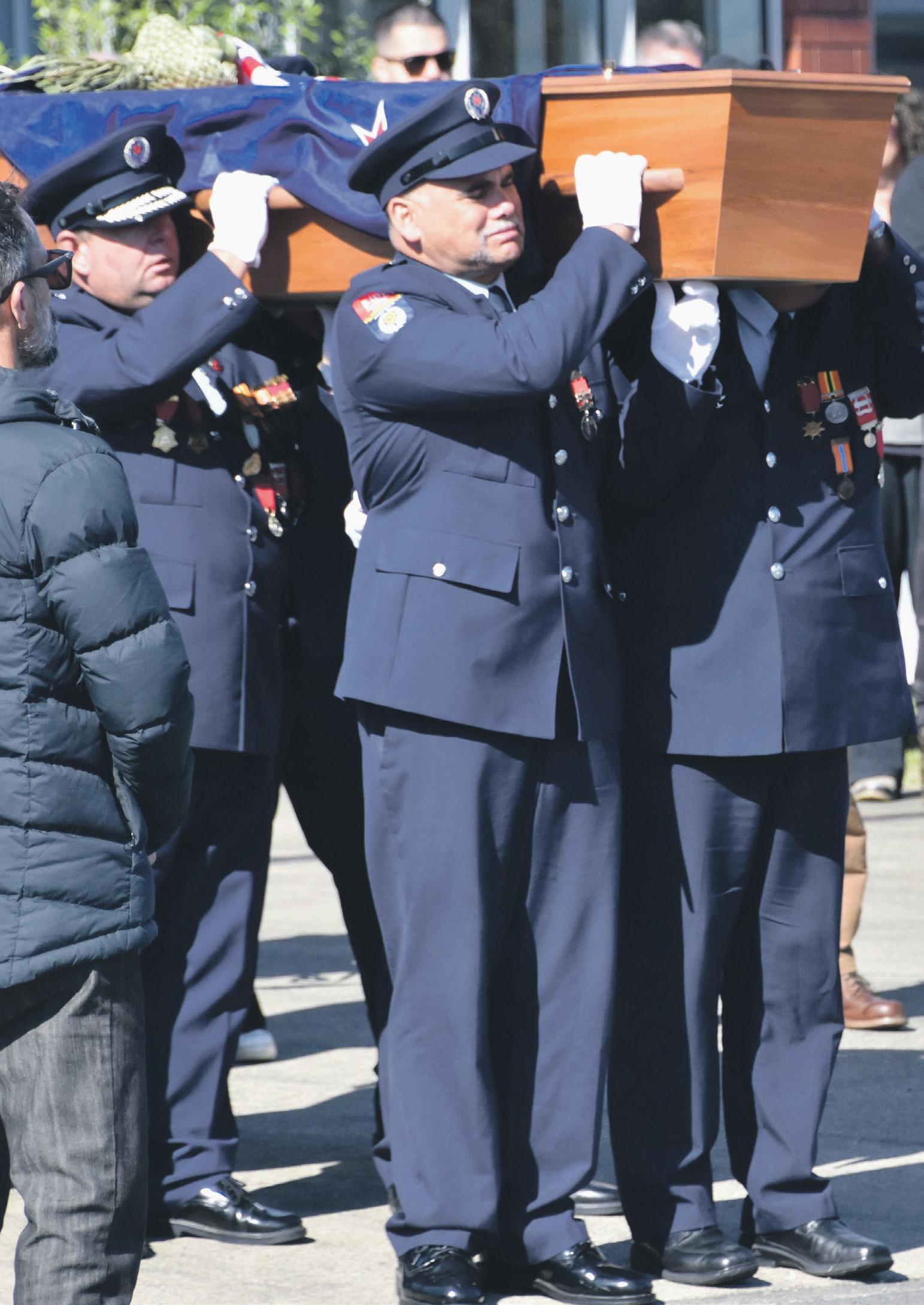 Every fire fighter from across the region formed a Guard of Honour for Merv’s final drive around his beloved Whitianga.