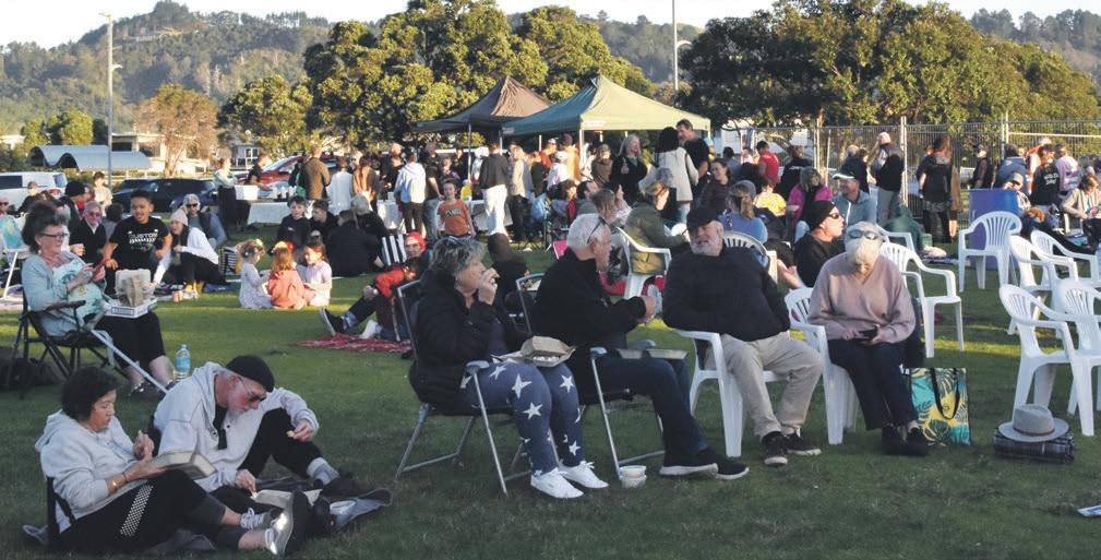 concert and hangi in Williamson Park were a feature of the Matariki celebrations In Whangamata. This was a generous, well-planned gift to the community. Everyone could buy a meal for $5. An army of volunteers served 500 hangi meals complete with steamed pudding and custard. There were also vegan meals - Kumara curry and rice and another stall with raw fish chowder and other choices – all for $5.00. With entertainment from local artist on the stage, people sat on their picnic chairs and blankets and enjoyed their meal and the extremely calm and clear weather. The blanketed park full of people of all ages was the best piece of scenery. A big thank you to Community Services and all those who made such a community meal for Matariki possible.