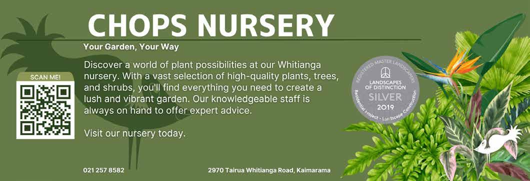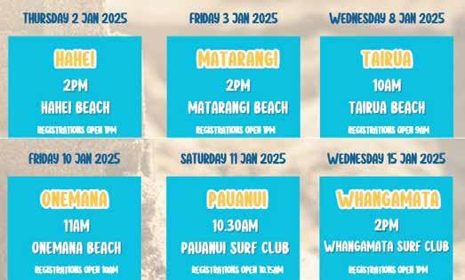 3. What is YOUR suggestion for a catchphrase or slogan for Coromandel Town and Northern Coromandel? Email your catchphrase or slogan ideas to committee member Aaron (aaron@ shellybeachcoromandel. co.nz), or submit to the CCBA Facebook page by Wednesday,15 January. Be sure to include your name and contact details so they can follow up if your idea makes the shortlist.
