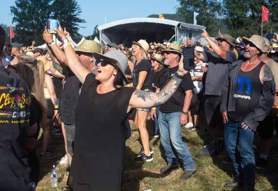 tors) onto the site of this celebration. Bordered by stalls, amenities and a scaffolded stage proceedings kicked off under local MC’s - singer-songwriter Te Paea Seasons and 2023 WMMA Emerging Artist and rapper, Chance (C33Y) Haddon.