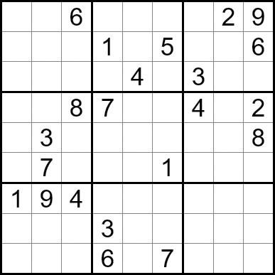 Fill in the boxes using the numbers 1 to 9. Every row and column, and every group of 9 boxes inside the thick lines, must contain each number only once.