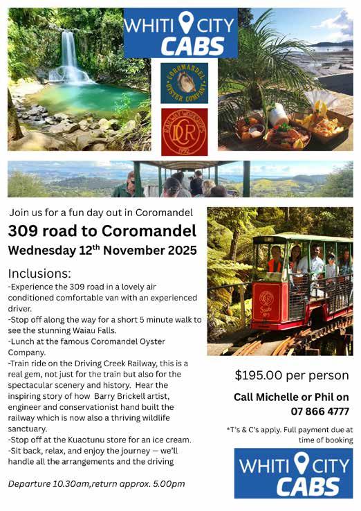 info or to join Grey Power Mercury Bay please phone 07 866 5516 or E: greypower.mercurybay@ gmail.com. Come and join us there is lots to celebrate.