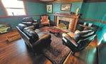 “We really try to go for the kind of old world cozy living room. We don’t have TVs. We’re family friendly. When we’re working, our kids are here,” Courtney says.