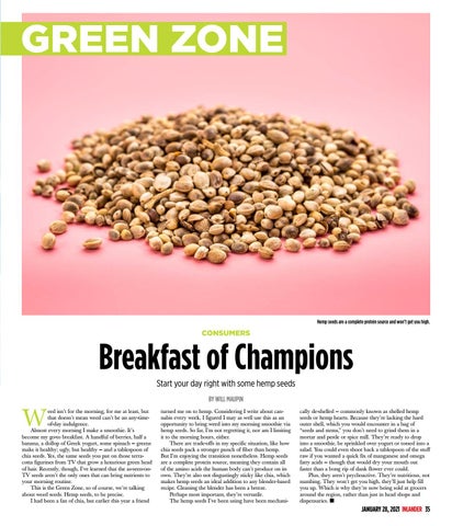 Breakfast of Champions Start your day right with some hemp seeds BY WILL MAUPIN