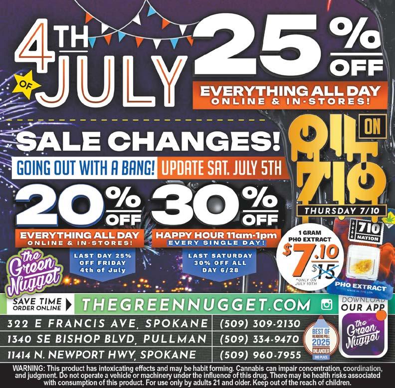 formance by Tyler Alai and free food from Indigenous Eats. July 4, 4-6 pm. Free. Kress Gallery, 808 W. Main Ave. bit. ly/4k7cqlI (509-456-3413)