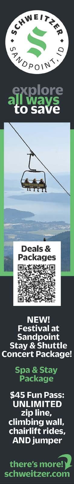 COEUR D’ALENE 4TH FEST A familyfriendly event that includes a dinner buffet, live entertainment and a fireworks display. July 4, 6-10 pm. $45-$125. The Coeur d’Alene Resort, 115 S. Second. cdaresort.com (208-765-4000)