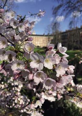 We also wanted some verticals to ‘bridge’ the planting with our large veteran plane trees on the lawn. Multi-stemmed cherry trees, Prunus x yeodensis and Prunus incisa ‘The Bride’, were selected for this and for their stunning blossom in early spring. These have also been planted in other locations in the wider Garden to create one whole ‘picture’.