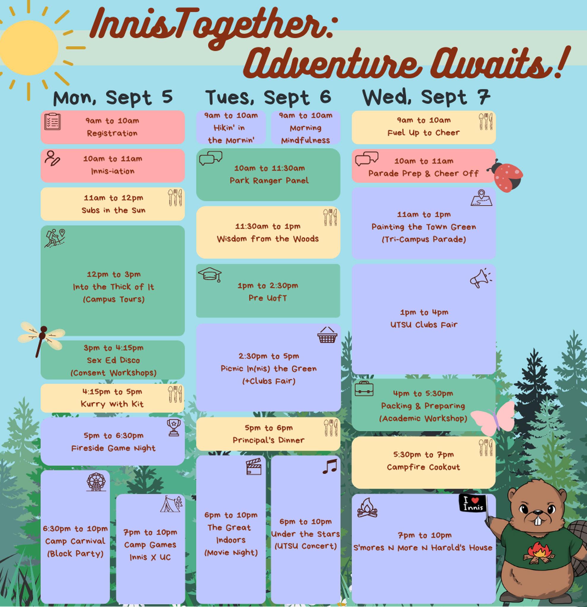 We promise to do the same. We will honour the legacy of Innisians before us and bring you four issues of interesting, informative, and just slightly in(nis)sane Innis content. Get ready for truckloads of alliteration and bad Innis puns. This is just the begin(nis)ing.