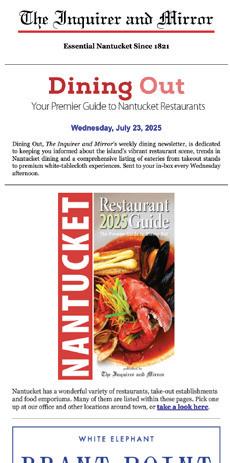 3:30 p.m. Dreamland Theater, 17 South Water St. The Nantucket Project presents a special day of storytelling, short films and candid conversations. For tickets or more information, e-mail admin@ nantucketproject.com