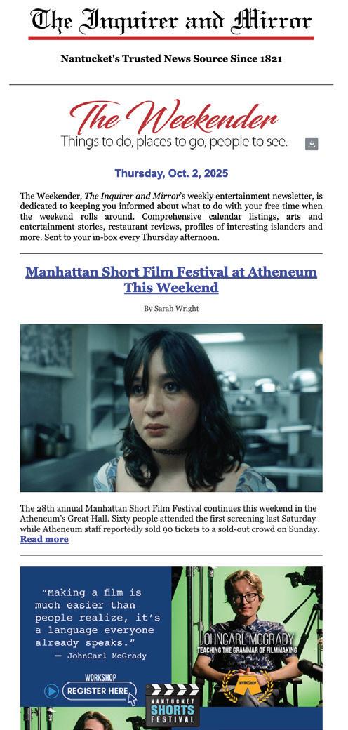 7 p.m. “Le Musiciens,” starring Marie Vialle, about a woman who succeeds in fulfilling her father’s dream: to bring together four virtuosos for a unique concert, eagerly expected by music lovers around the world. The only problem is, they are incapable of playing together. Free for Dreamland members. Tickets at www.nantucketdreamland.org