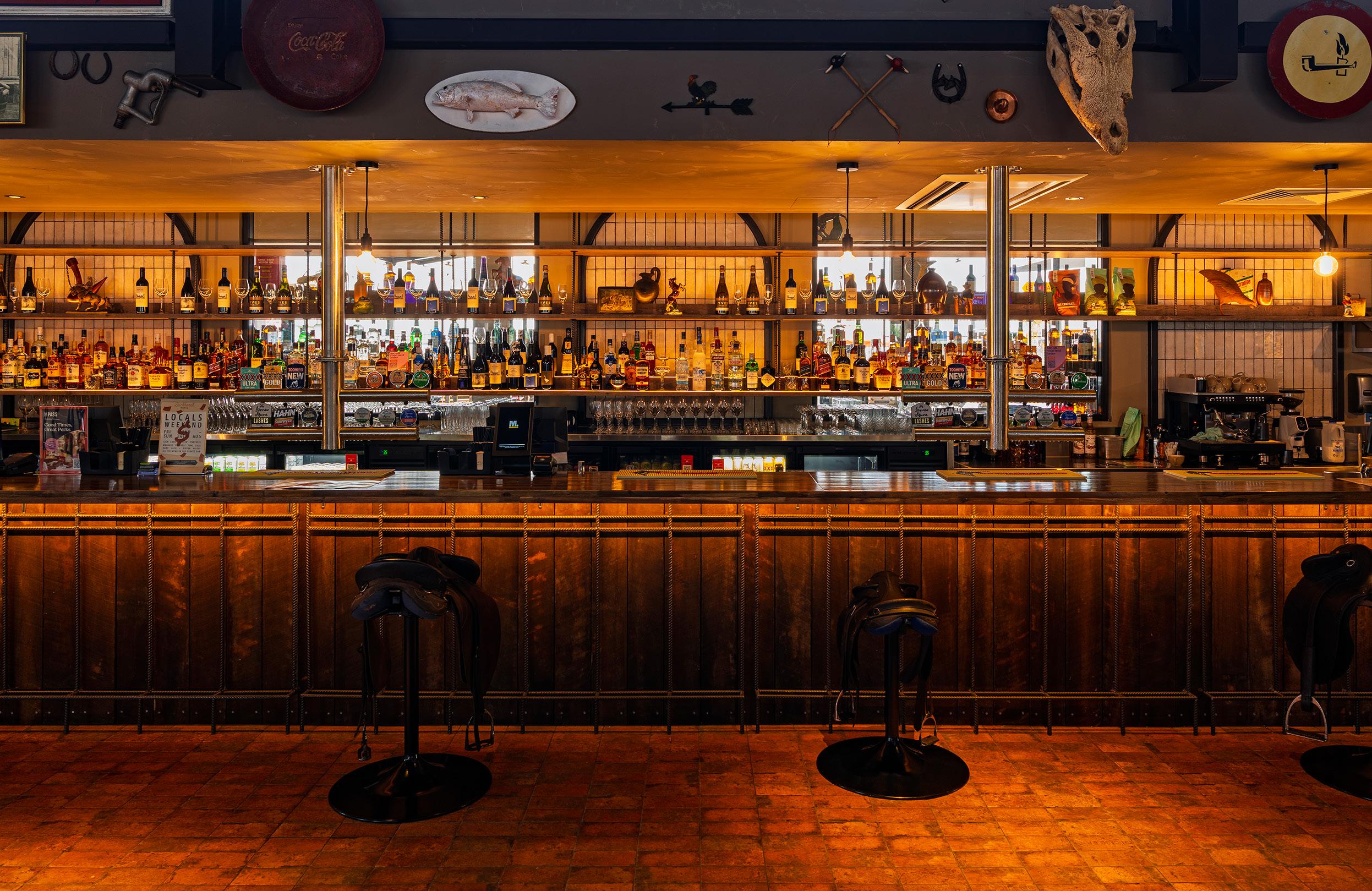 Saddle bar seats are one of the Leichhardt Hotel’s many nods to the Aussie outback.