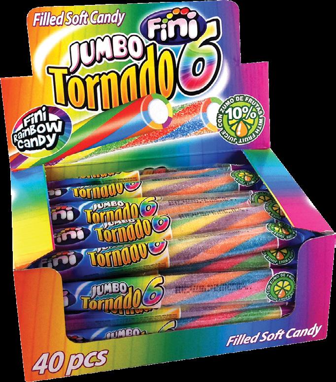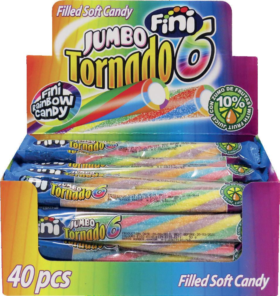The Fini Jumbo Tornado Bar is insanely delicious and a memorable sweet snack experience! It is a soft rainbow candy bar, that is sour on the outside and creamy on the inside.