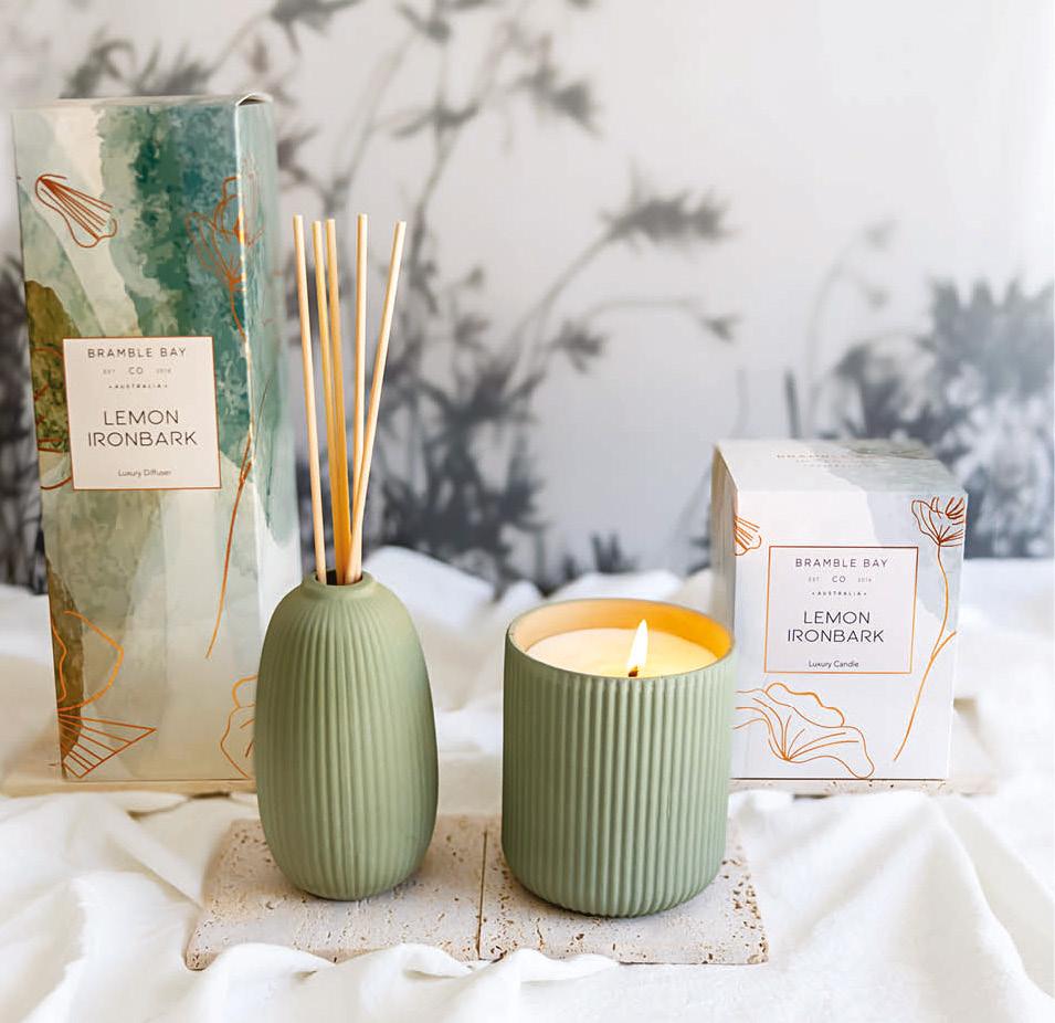 1. Lemon Ironbark candle and diffuser, wholesales for $14.95 each. Bramble Bay Co, 07