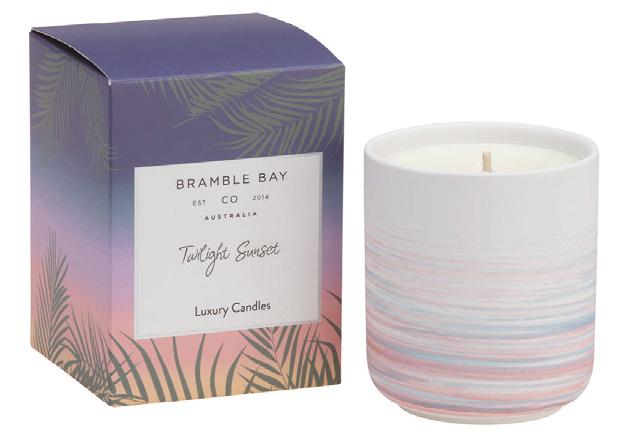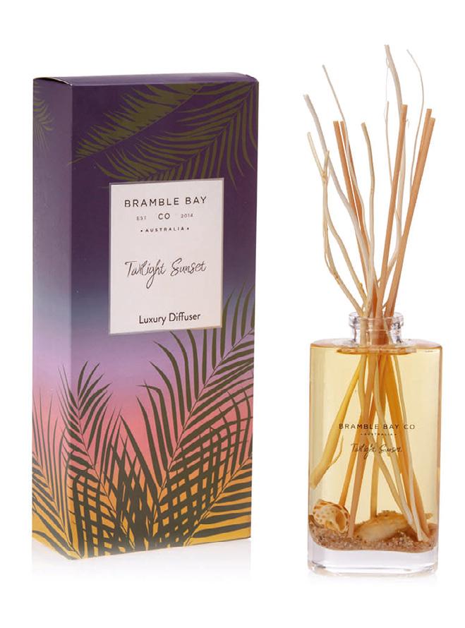 2. Twilight Sunset candle and diffuser, wholesale for $14.95 and $15.95. Bramble Bay Co, 07 3492 0951, sales@bramblebayco.com, www.bramblebayco.com, www.facebook.com/bramblebaycandleco, www.instagram.com/bramblebayco 3. Inis home fragrance diffuser and scented candle, wholesale for $22.73 and $20.45.