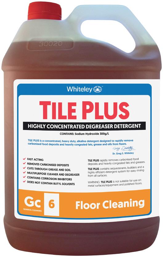 Tile Plus is a water soluble, concentrated alkaline detergent designed for use as a heavy-duty cleaner and degreaser. It rapidly emulsifies, suspends, and removes all types of animal, vegetable, and petroleum oils. It is also extremely efficient at removing greases and grime in industrial, commercial, and food processing areas. Tile Plus has a corrosion inhibitor to protect surfaces and equipment, it does not impart any cleaning odours and is non-flammable. Tile plus is available in a 5-litre pack size.