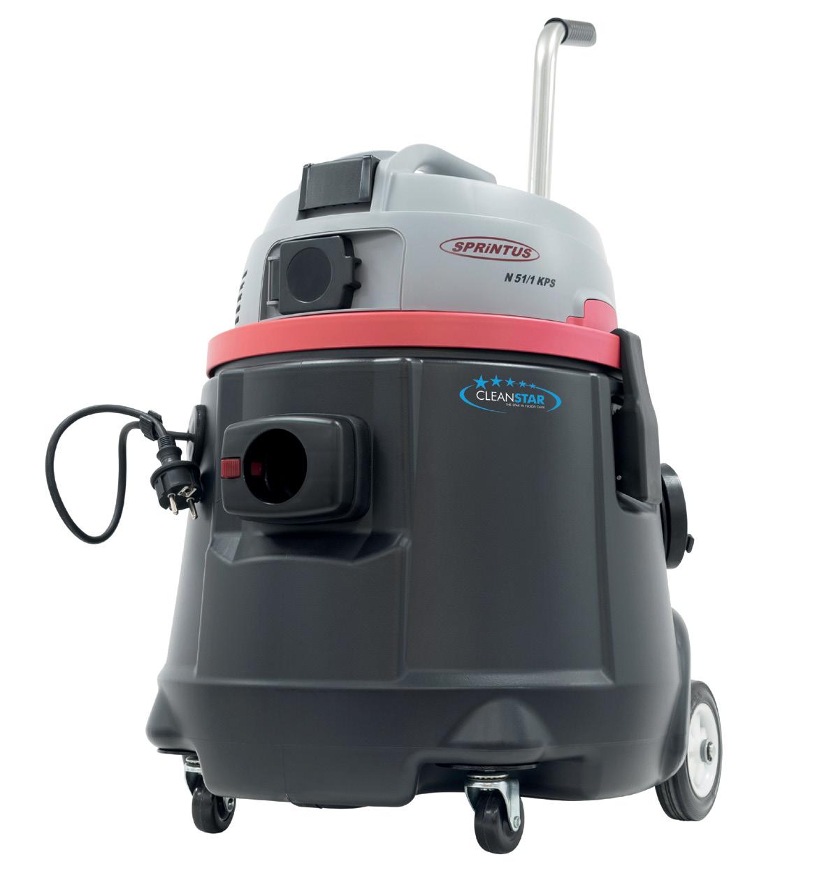 Available from Cleanstar, the N51/1 KPS, with its 50-litre container volume, is ideal for tough, professional use. The integrated pump with a flow volume of up to 14,000 litres per hour can be directly attached to the vacuum’s power socket. A filter net prevents leaves, wood, and smaller objects from entering the container and prevents blockages. The N51/1 KPS can also be used as a normal vacuum cleaner and achieves a suction power of 230 mbar. Other key features: