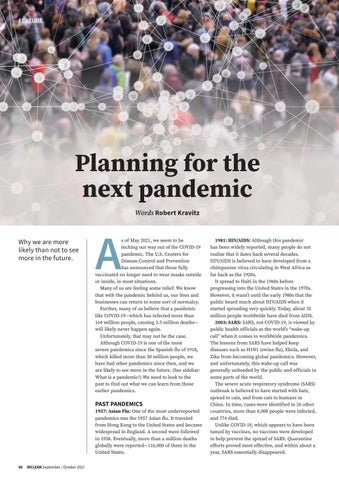 Planning for the next pandemic Words Robert Kravitz