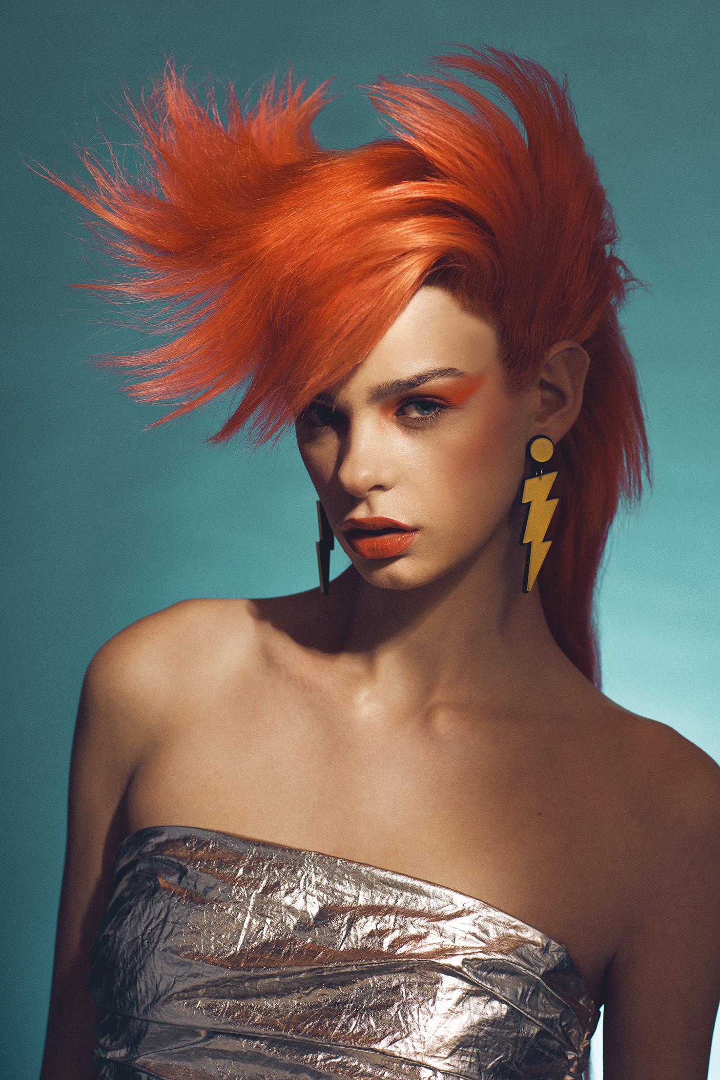 My winning look was inspired by androgyny and very Boy George. I wanted that fluidity of gender to be representative in the hair with the melting of vibrant colours together and texture in play, paired with hard lines and structure within my haircut to show all aspects of the gender spectrum.