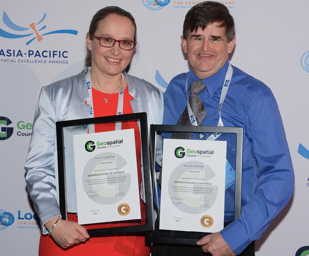 Mary-EllenThe Geospatial Council of Australia recently honoured Associate Professor Petra Helmholz and Warwick Hehir the prestigious Fellow status. Both members have demonstrated outstanding expertise, achievements and contributions in their field.