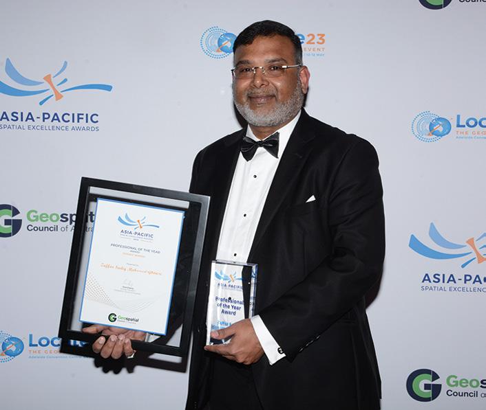 Dr Zaffar Sadiq Mohamed-Ghouse was named Professional of the Year. A former President of SSSI and former Locate Board Chair, Zaffar is a global leader in the geospatial industry, a government advisor and mentor to many geospatial professionals. He is well known to many of our community, especially for his work with the United Nations.