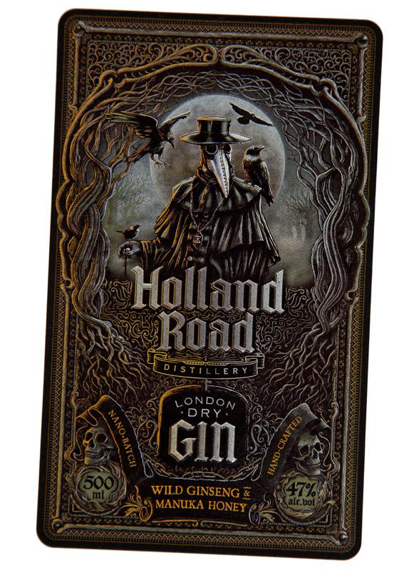 Andrew Thomson from Kiwi Labels said, “Holland Road Gin is meticulously hand crafted and bottled in Eureka, New Zealand, and distributed to bars and restaurants throughout the country.