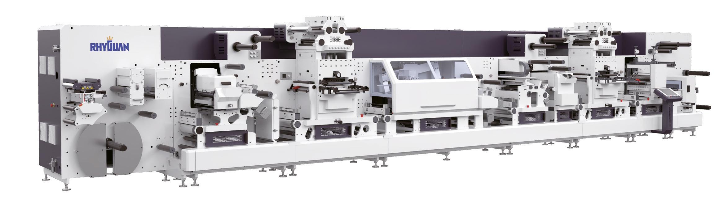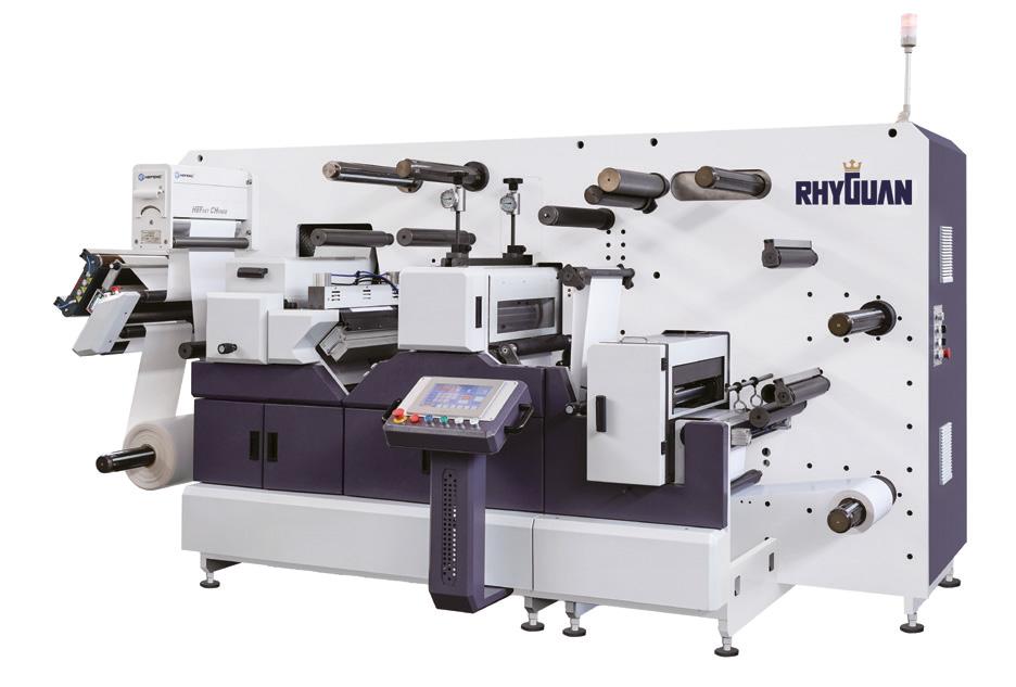In principle an inline narrow/mid-web press, flexo, or offset, could include any module common to a label press, including screen or inkjet bar for variable imaging or digital embellishment. For longer runs, rotary cutting and creasing dies can be used for single-pass production, a configuration shown by Hontec at Labelexpo Asia.