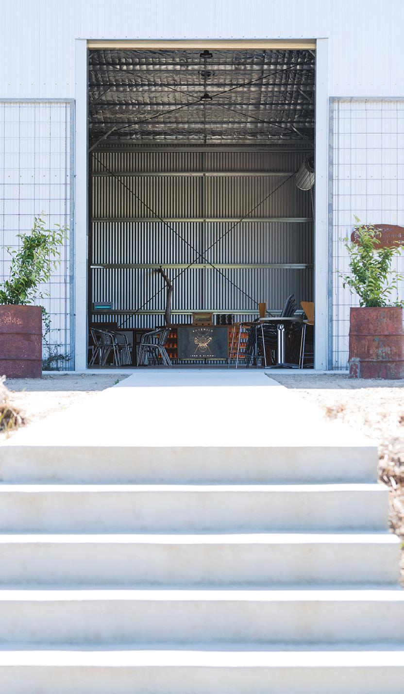 Today, visitors discover the intimate solar-powered Cobar Sound Chapel as a corrugated concrete cube within the water tank’s roofless cylinder. At its four corners, light streams through slivers of cobalt blue glass painted by local Aboriginal artist Sharron Ohlsen. Inside is a concrete bench placed on a floor of rounded river pebbles: both beautiful and pragmatic as they discourage brown snakes. A gold-rimmed cone set inside the ceiling offers an eye to the universe as you listen to music that contemplates the cosmos.