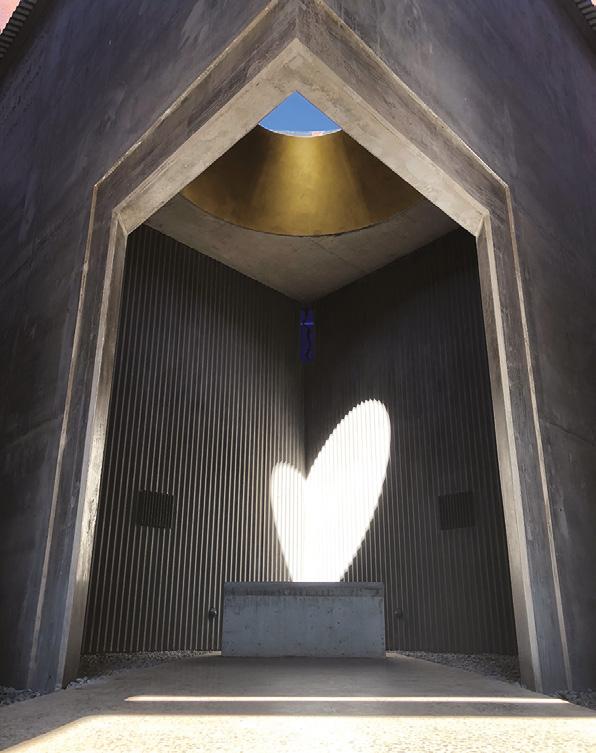 The Cobar Sound Chapel (cobarsoundchapel. com) is located about 1.5km west of the town of Cobar in Central Western NSW. It is open Monday to Friday, 8.30am-4.30pm and Saturday and Sunday, 9.00am-4.30pm. To gain access inside, collect the key from the Great Cobar Museum about two kilometres from the Chapel at the eastern end of Marshall Street in the centre of town. Access is free but visitors are asked to leave proof of ID and a $300 cash bond which will be returned when you return the key after locking the gates. Only one key is handed out at a time so please call ahead on (02) 6836-5806 or email visitcobar@cobar.nsw. gov.au to make a booking.