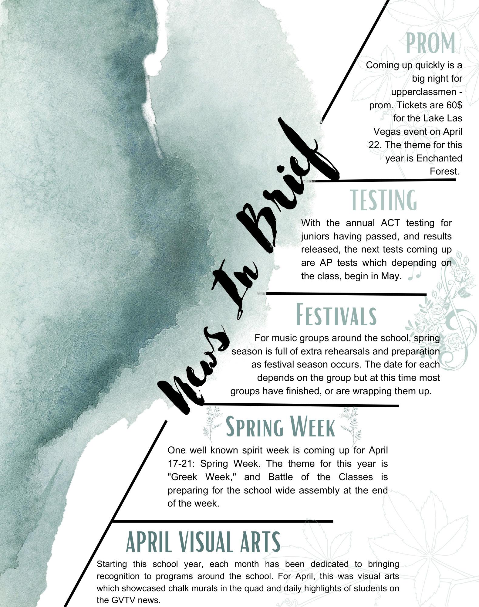 A lot more change than a class schedule is about to happen as college decisions are being released and seniors face deciding the course for their approaching future. It is a lot, we know. Something to ease the mind of these stresses could be in our more light hearted and humorous pieces of this issue.
