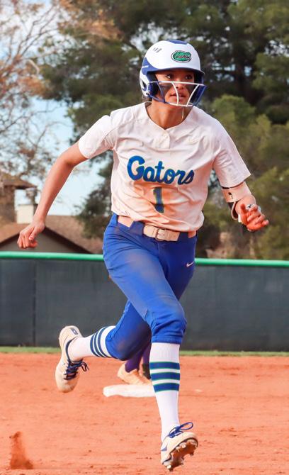Lyla Baxter beats out a groundball for an in field hit on March 8 against Silverado. The Gators won the game 15-0. Evangelina Robles |