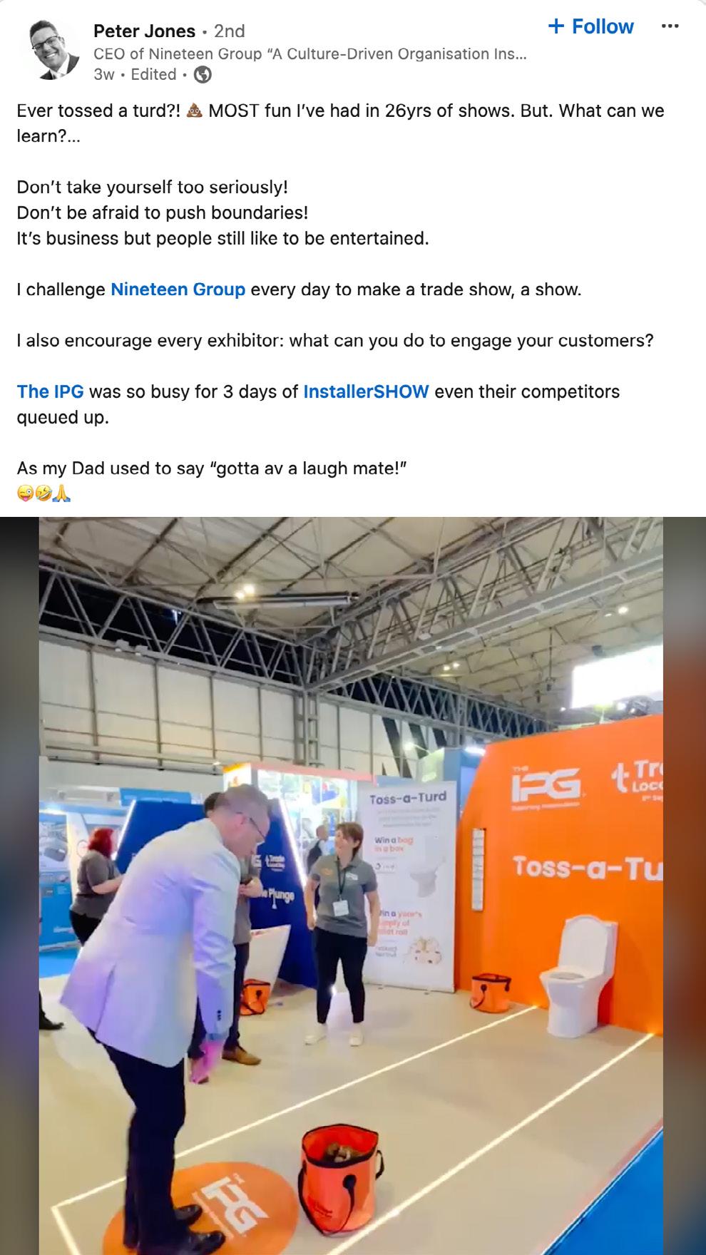 Mark has already dived in headfirst, participating at our InstallerSHOW stand in June. His engaging presence, which included fun activities like "throwing turds" and jumping in the bath, helped drive awareness of Trade Local Day. His genuine camaraderie drew a crowd and even attracted industry giants like On The Tools to join the fun.