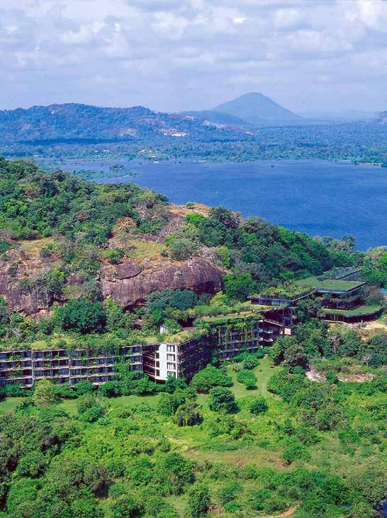 Deshamanya Geoffrey Bawa, the hotel resembles outspread wings of a bird, following the line of the cliff from which it seems to emerge. Due to the raised platform of the structure, natural water streams that passed through the area 25 years ago still flow unobstructed, enriching over 30 water systems downstream. Conceptualised to blend into the eco-system, the hotel allows freedom of movement for wildlife and vegetation.