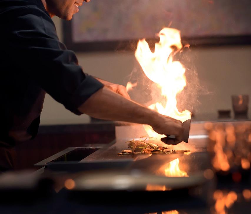 Whether you want to watch blades move at dizzying speed across a grill or watch flames soar high into the air, teppanyaki is where it’s at. It’s for everyone and here at the Robata, you will see families, corporate guests and groups of friends ready to chow down!