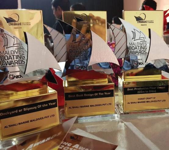 Al Shaali Marine received the award for Dockyard/ Slipway of the Year by Liveaboard Asssociation of Maldives, Best Boat Design of the Year, Best Production Fibre Vessel of the Year (24-5m) and e Best Production Fibre Vessel of the Year (40-15m).