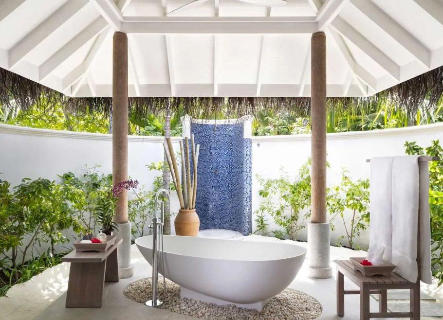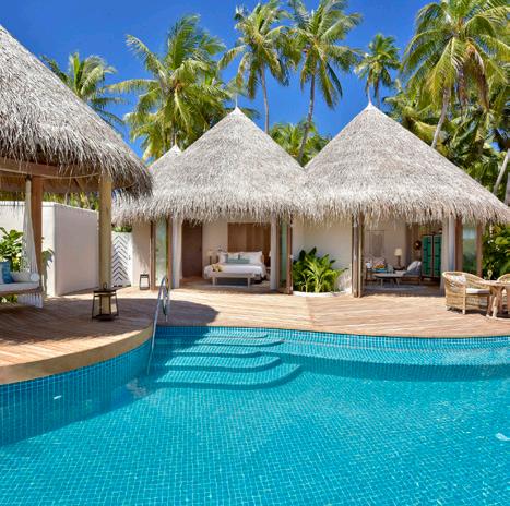With the new sleek indoor and outdoor spaces for the bathroom, guests can sink into a deep oval tub in their courtyard garden, or retreat to the cool of a glassedin air-conditioned area. In addition to this, there is now a traditional Maldivian swing on each villa terrace, giving the villas an authentic touch of local culture.